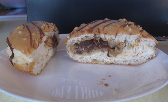 The chocolate/coconut frosting, in particular, has a crustiness that works in explosively fine tandem with the great gobs of real cream and jam that constitute the filling.