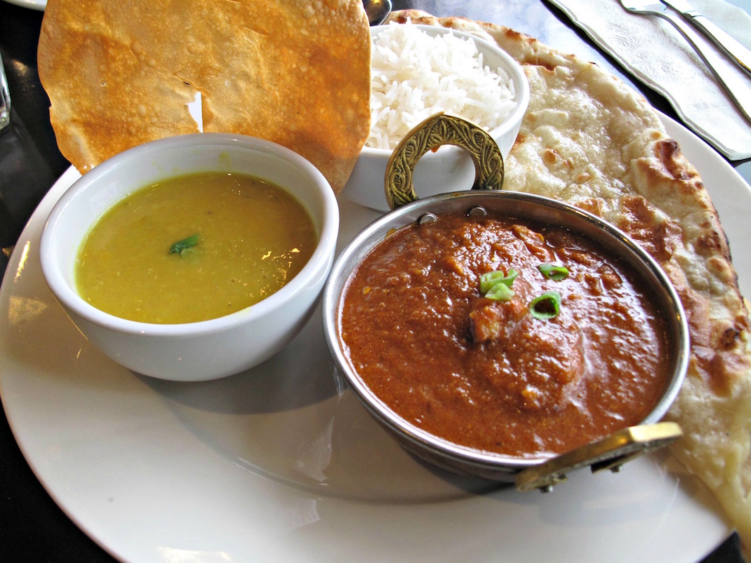 And for our purposes, lunch is the key – the lunch special list includes a nice line-up of curry dishes that are accompanied by dal, rice, naan and a papadum.