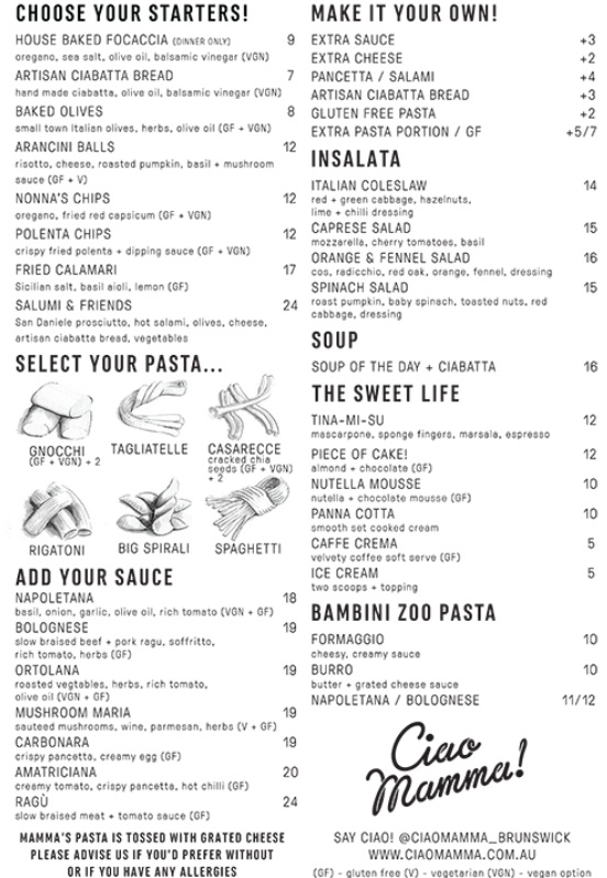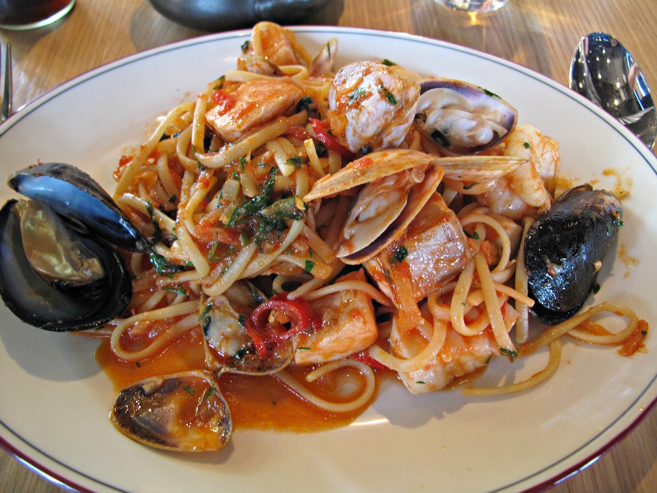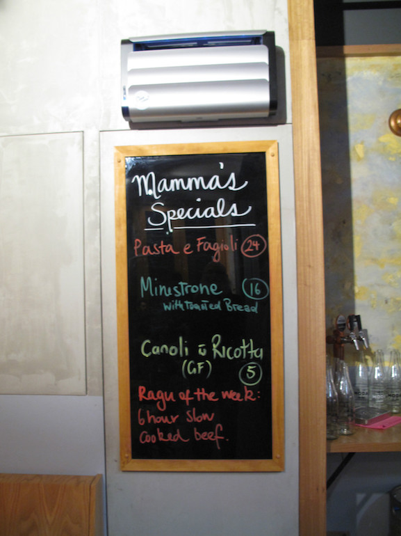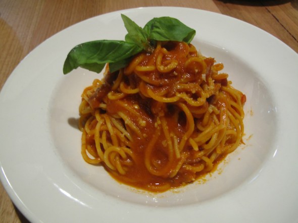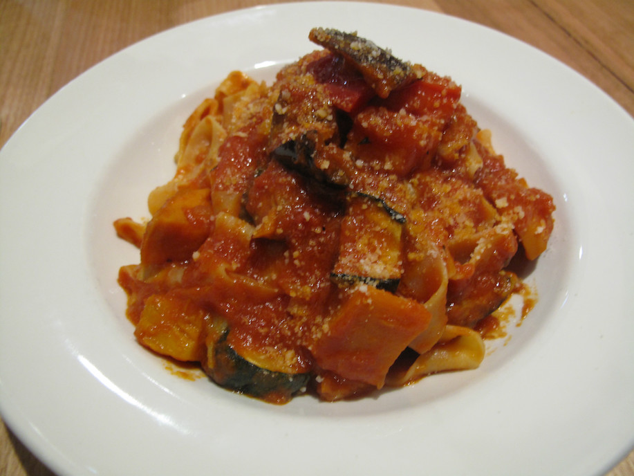 For mains, for us, two pasta offerings and two pizzas.