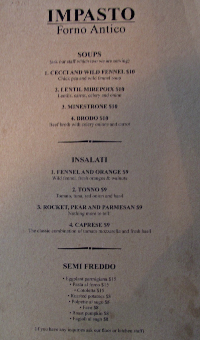 … and house sausage ($22) with pork sausage, fennel, tomato, eggplant and pecorino both exhibit great flavours coming from perfectly matched ingredients.