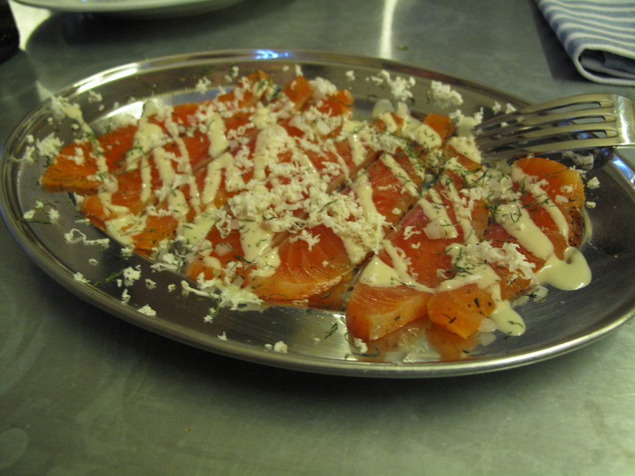 … and smoked ocean trout, Grand Marnier and horseradish ($16).