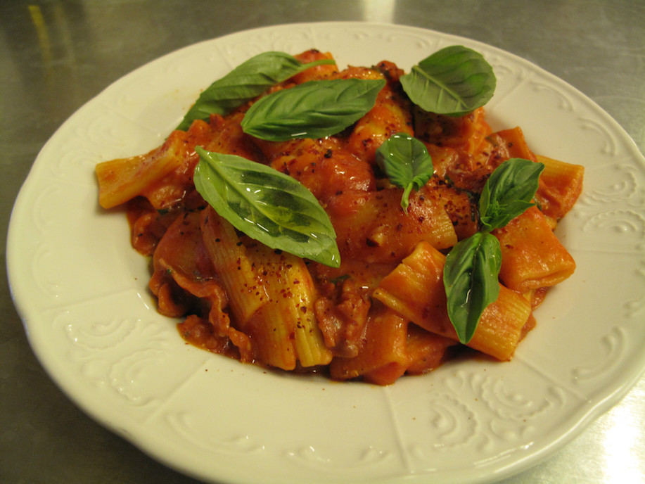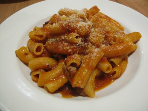 From the short specials line-up, Bennie chooses rigatoni with a sticky tomato sauce including fermented chilli and pancetta ($18).