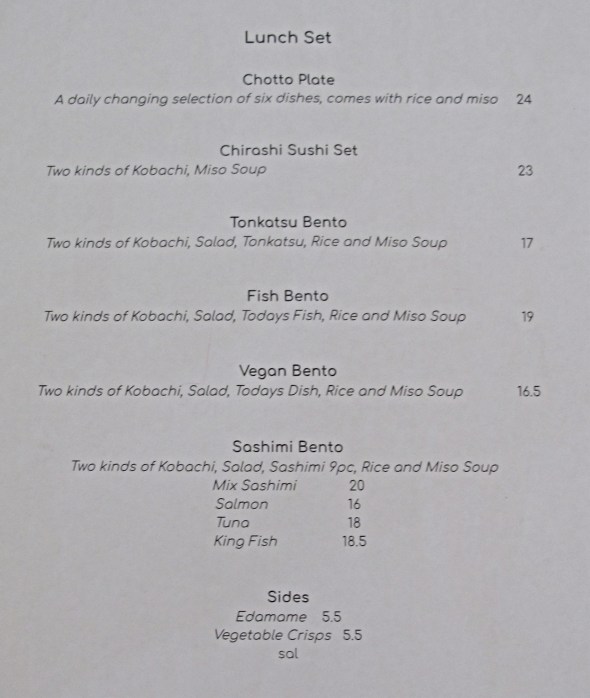 The lunch offerings here evince a similar Japanese, fusiony outlook as at The Usual Joint – a little flashier and more elaborate, a few bucks more.