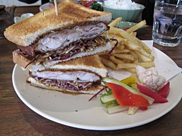 Rice, pickles and a big, fat dollop of may0 complete the picture.