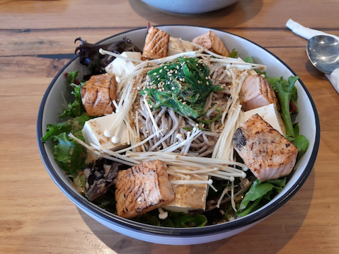 My salmon soba noodle salad ($17.50, top photo) is lovely and bursting with fresh, clean flavours.