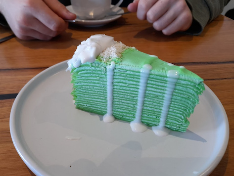 We’re big fans of the latter so indulge this time out in a ridiculously delicious wedge of their pandan and coconut ($10).