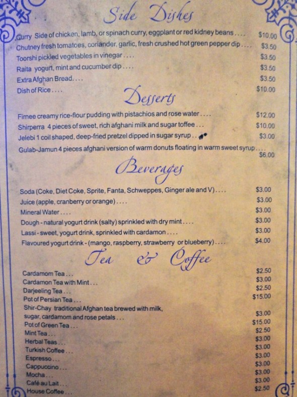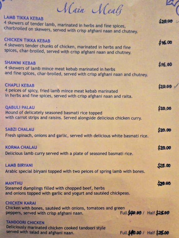 I’ve had no lunch, so am hungry – my mouth really does water as we peruse our menus, which feature both the expected and the not so much.
