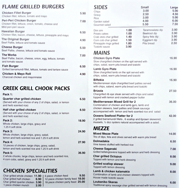 Zegov Charcoal Grill, 16 Wood Street, Thomastown. Phone: 9078 6811