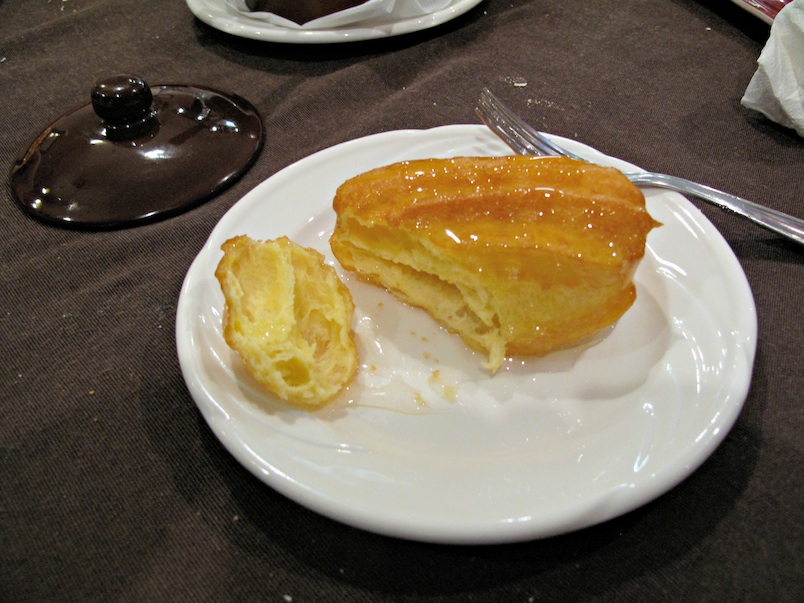 Tulumba, a dessert special not listed on the menu and yet another treat offered us “on the house”, is like a cross between churros and eclair.