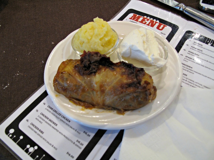Piroshka ($4 each) look like Chiko Rolls and are filled with a mix of cheese, pickled gherkin, ham and mayo. They’re delicate but, for mine, a little on the bland side given the potential pungency of the fillings.