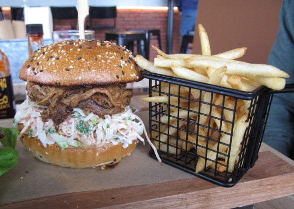 Bennie’s Piggy Smalls ($17) – with heaps of excellent shredded pork and equally generous quantities of apple slaw – is a doozy and goes down right fine.