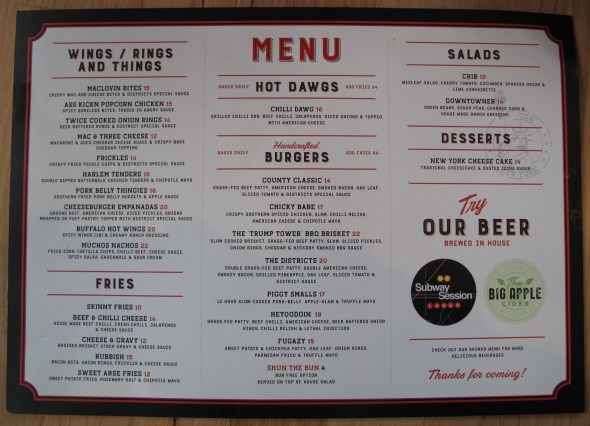 Based on an early menu seen by CTS while getting up a preview story a couple of months ago, we have been expecting a much more lavish menu including dude food heavyweights such as ribs and fried chicken.