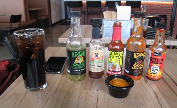 We do enjoy dunking our fries in the various hot sauces available – and find a tub of the mildly-spiced, house-made concoction as good as any of them.