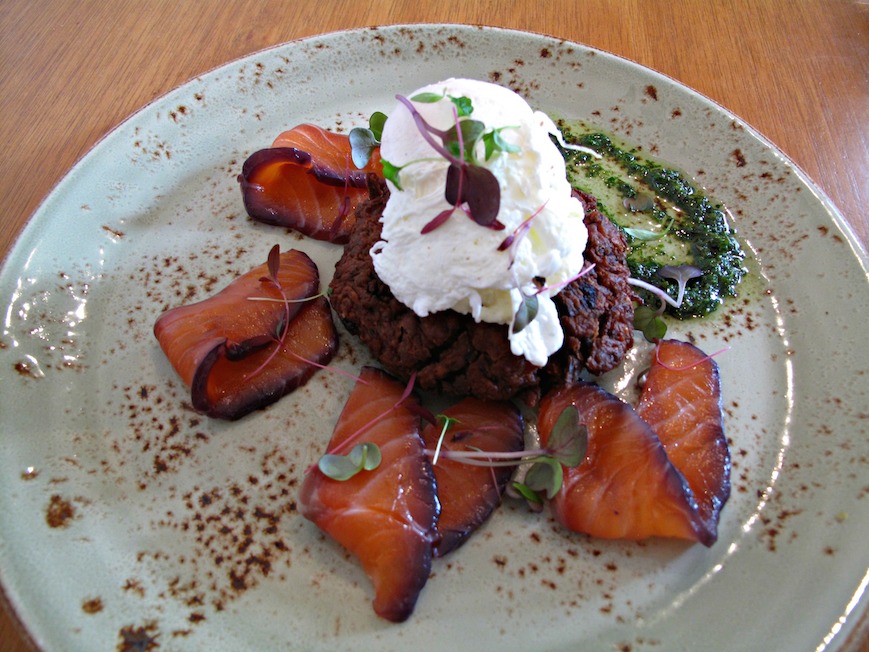 They’re abetted by spot-on accompaniments – more chilii dip joined by great hummus, tabuly, grilled tomato and capsicum, and cabbage salad.