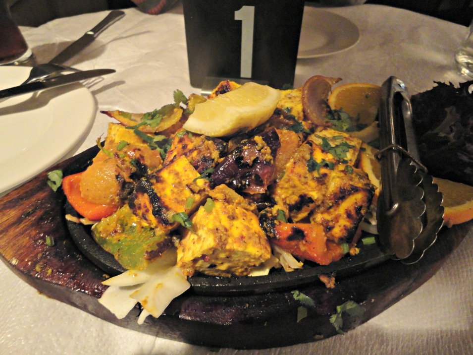 But, to my surprise, Bennie really likes the paneer, happily stabbing successive cubes until our next platter arrives.
