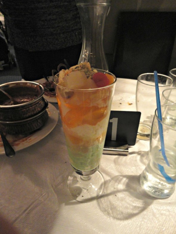 We’re full and then some – but, naturally, Bennie has no problem finding room for his tall glass of jelly, ice cream and fruit that goes by the title of Tutti Frutti.