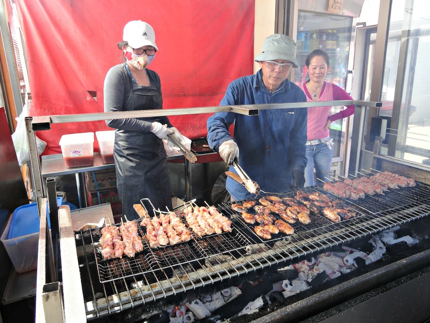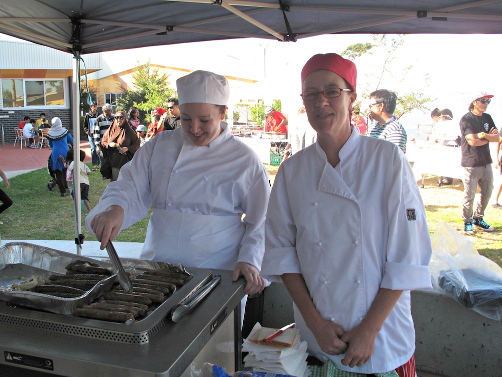 As well as a range of snags, they’re cooking up ham and chicken steaks.