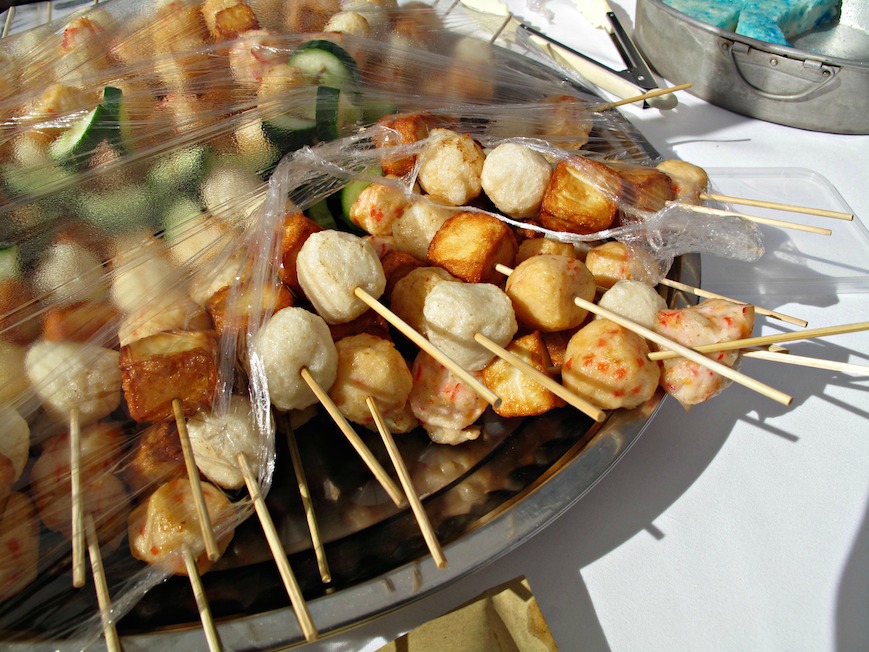There’s a quite nice range of food-to-eat-right-now stalls, but only a very small coverage of fruit and vegetables, and none at all that I could see of fresh meat, poultry or fish.