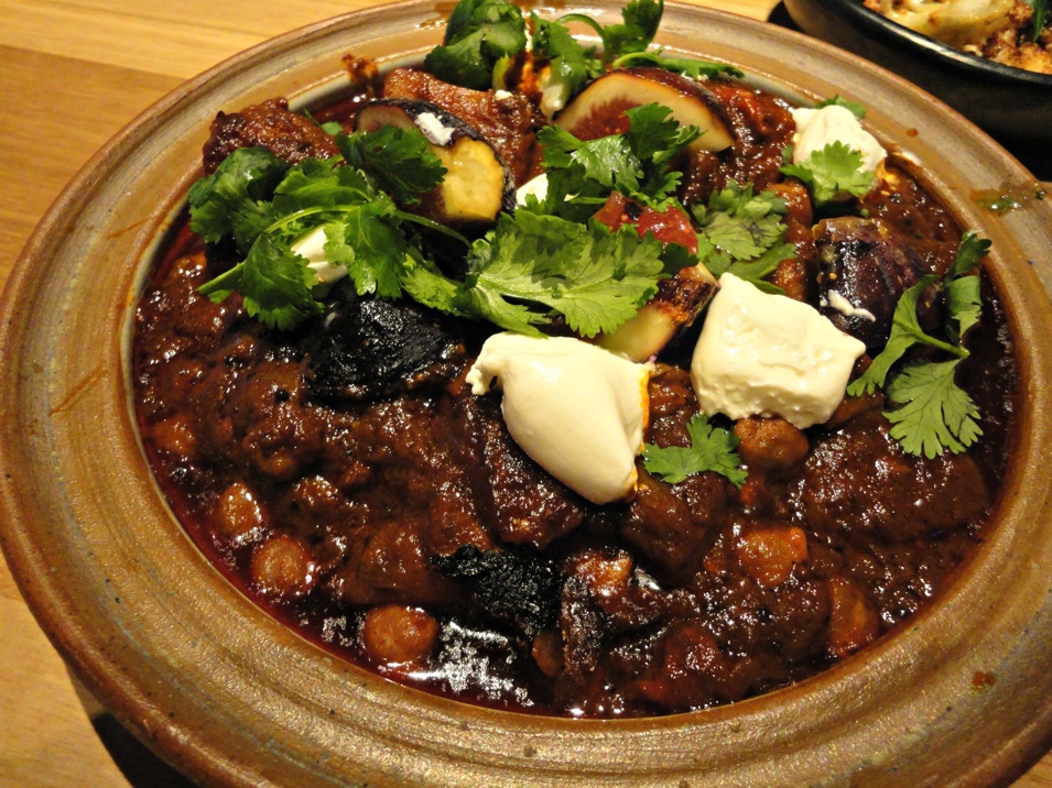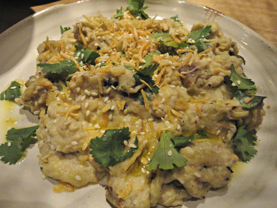 “Smokey eggplant, crispy garlic, sesame, coriander” is, as expected, a rough-cut salad that is a close relative of babaghanoush – and just like only the very best eggplant dips, it really does pack a wonderful smokey punch.