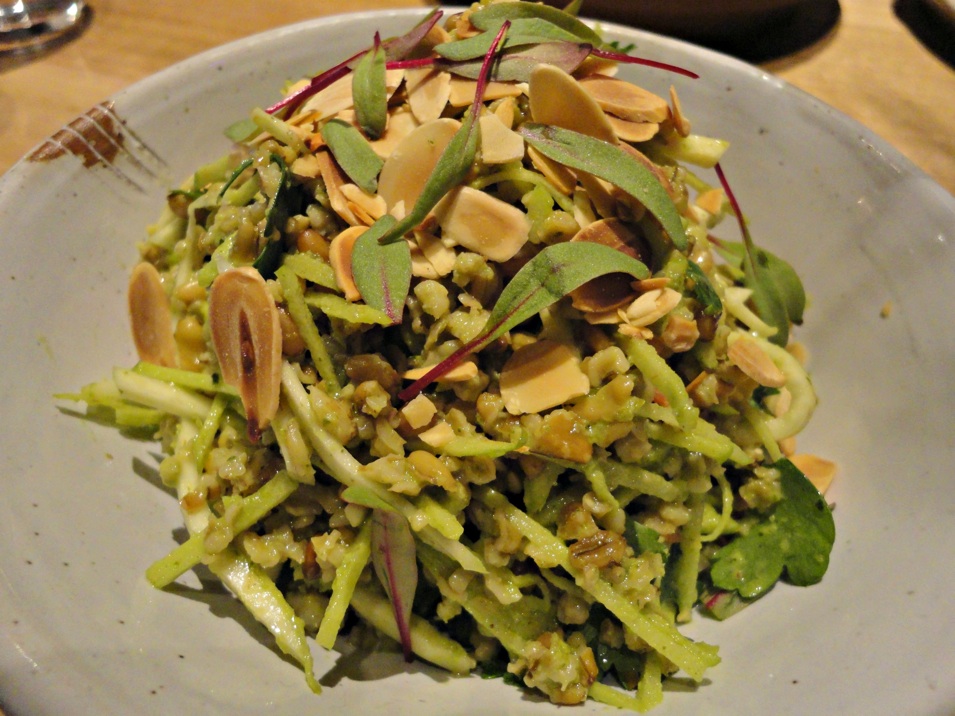 “Freekah, apple, celeriac, chard, green chili, almond” is a killer salad – fresh, light, all the ingredients in harmony. And, a little surprisingly, it provides the night’s biggest chilli hit.
