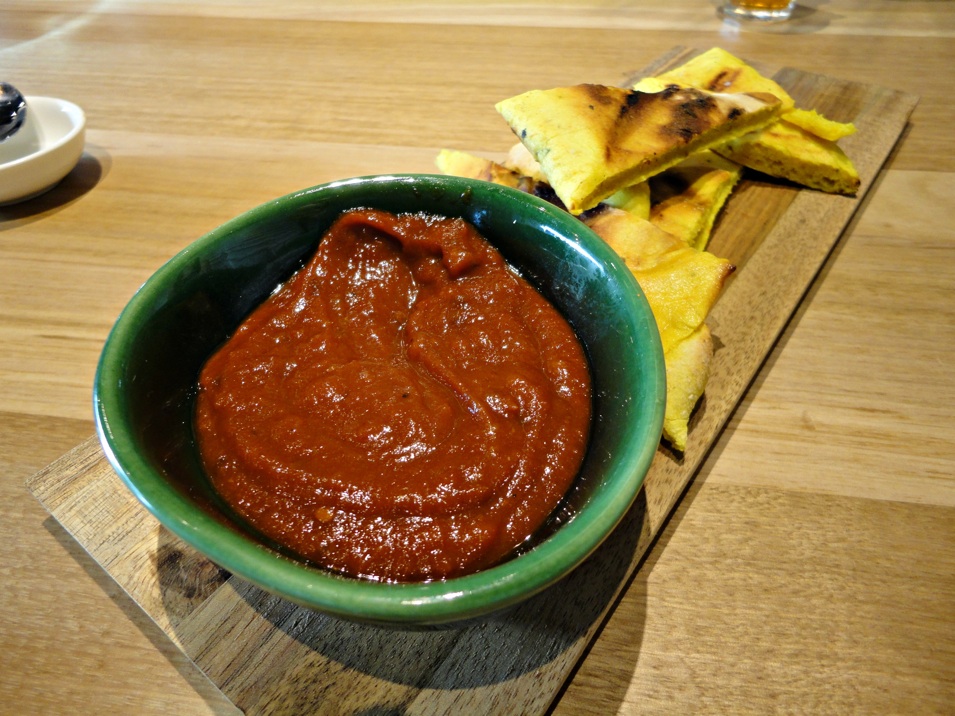 “Grilled batbout flat bread, tomato lemon jam” makes a nice start. The bread is plain and soft, while the jam has lovely, lemony tang.