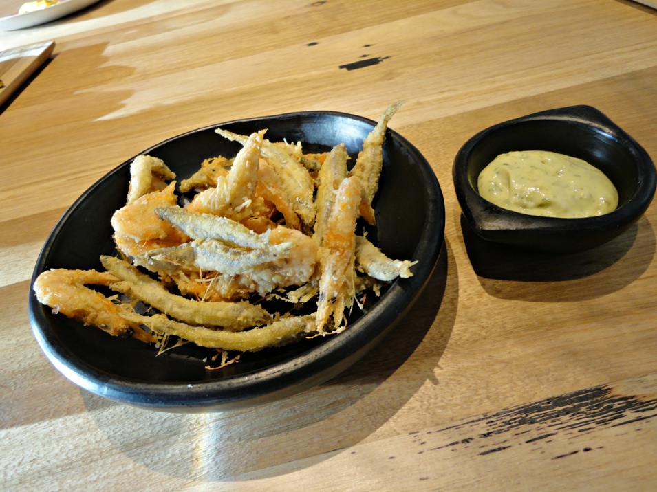 “School prawns, whitebait, chermoula aioli” is beautifully fried and delicate.