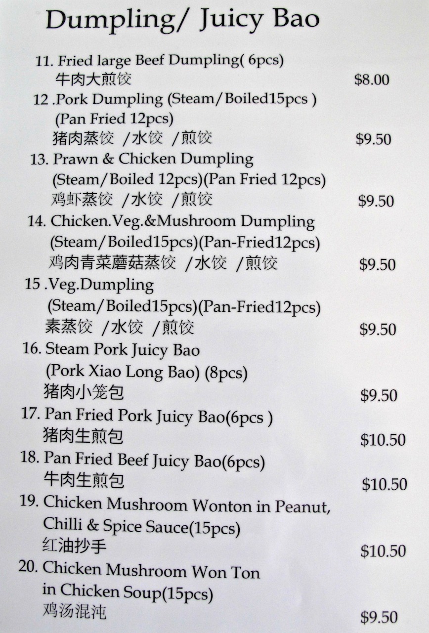 As we takes our seats, we are entertaining thoughts of trying up to a handful of the many dumplings featured on the menu (see below) – and chicken feet.