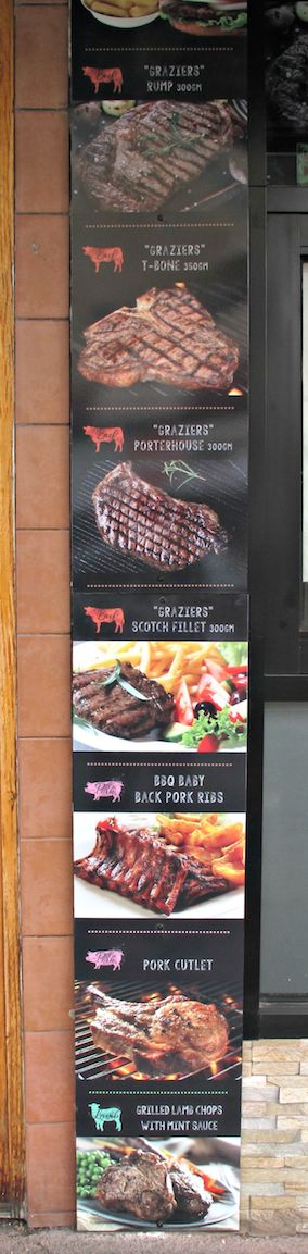 But what arouses our curiosity, impels us through the door and – eventually – finds us taking a lunch-time table is the menu item that is the half rack of beef ribs (menu below).