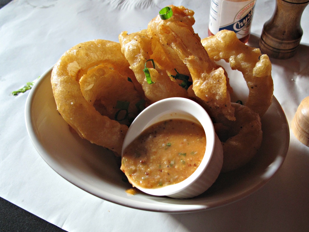 Onion rings ($8) are superb in their fat, deep-fried decadence, and are wonderful dunked in the tangy (remoulade?) sauce.