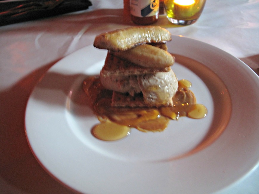 Ice-cream sandwich ($12) is a fantasia of “housemade peanut butter banana ice-cream between graham crackers, caramel, caramelised bananas, honey”.