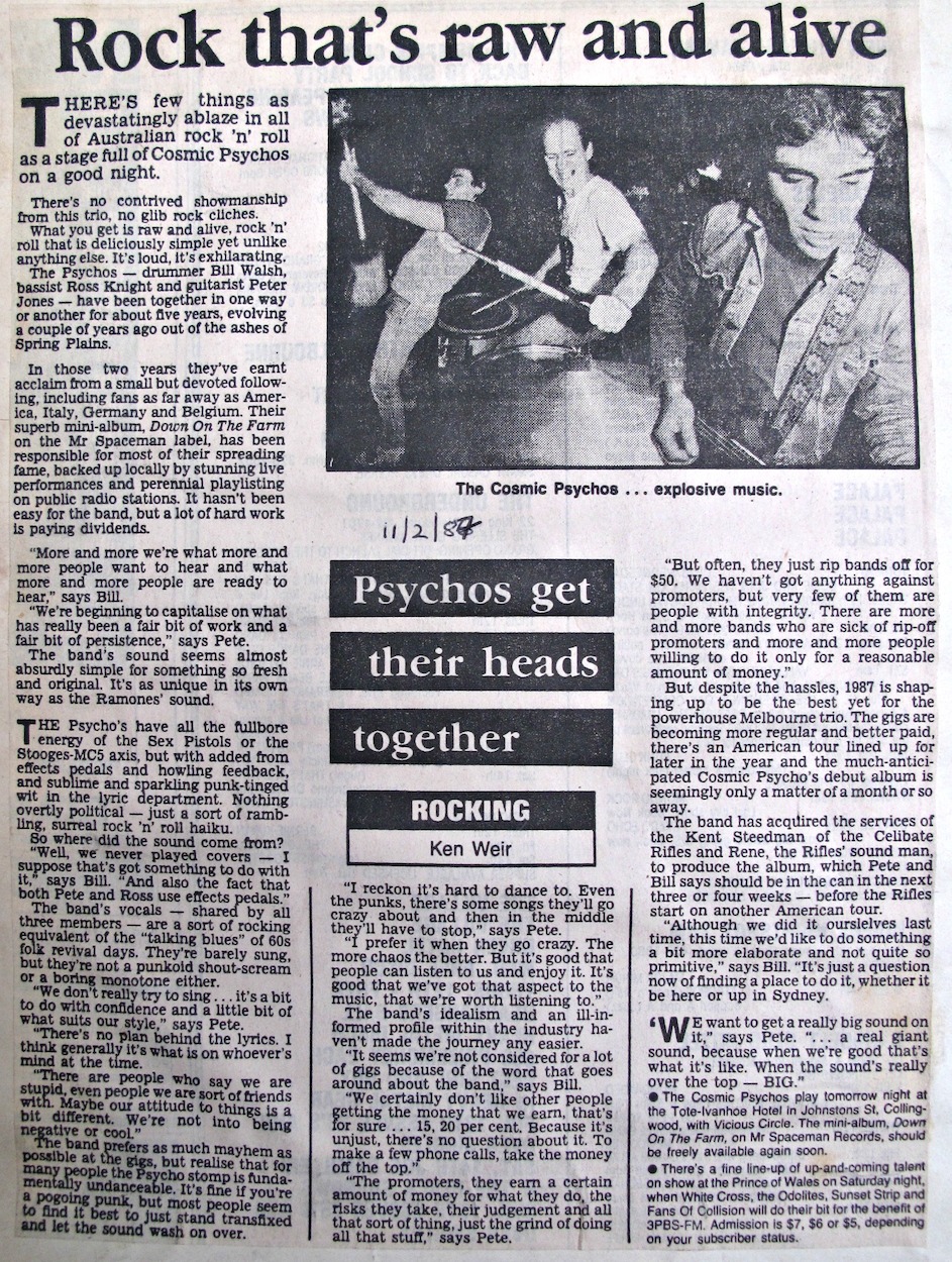 Bill even recalls the story I wrote about his band in the now long defunct afternoon Herald newspaper at the very start of my Melbourne music-writing career.