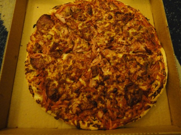 Earlier in the week, Bennie had stated he’d had enough of Lebanese pizzas and was hankering for a slab of old-school Aussie pizza pie – specifically, of the “meat lovers” variety.