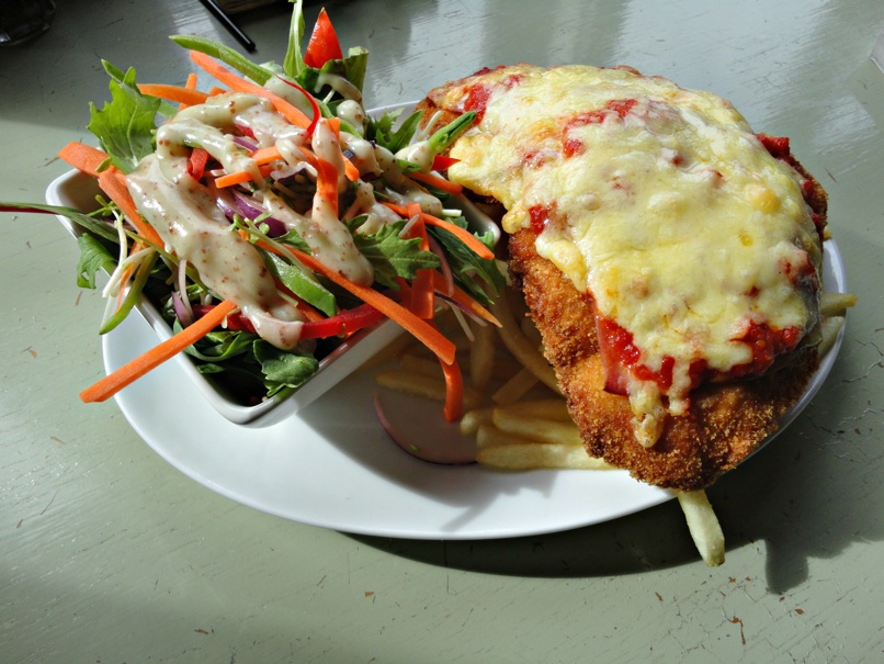 However, after being assured that fresh oil has just been installed in the deep fryer, I do something unusual for me – I order the chicken parma ($22).