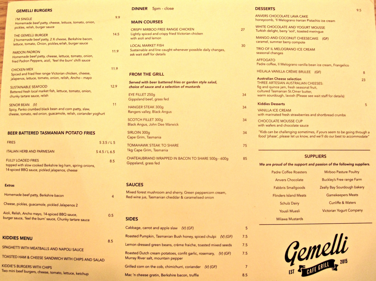Mind you, half the menu (see below) is dedicated to burgers and the like.