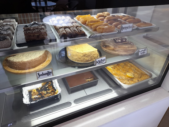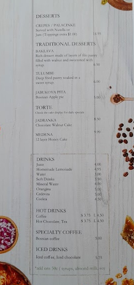 The white and somewhat frilly ambience at first seems to indicate to us that it’ll be the kind of place we will for sure be offered to us coffee and sweets/cakes – and maybe burek if we’re lucky.