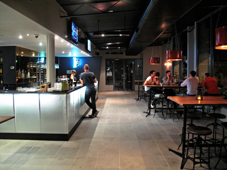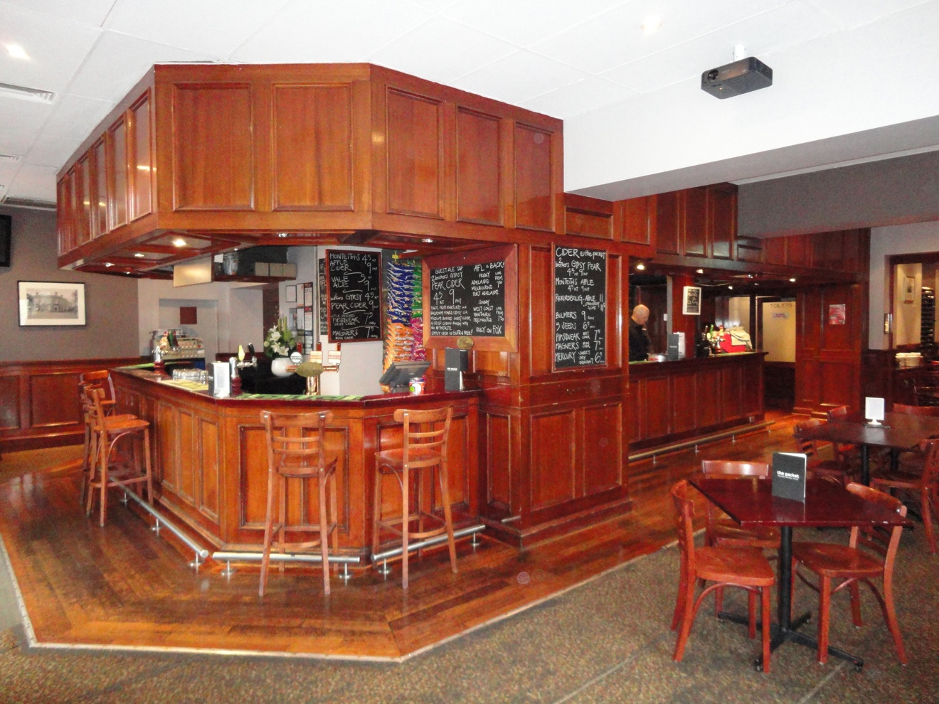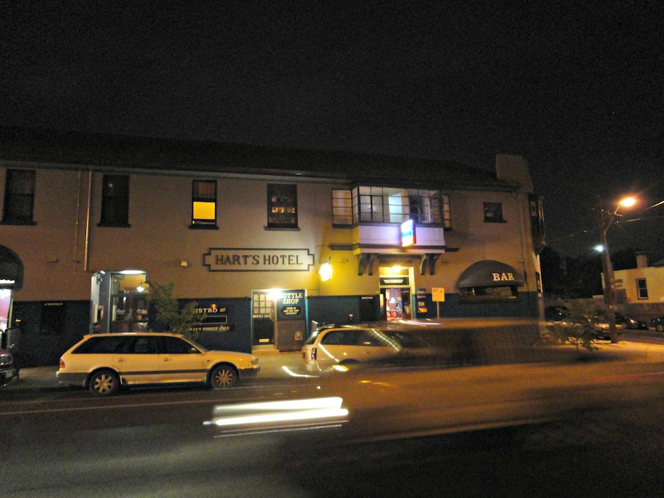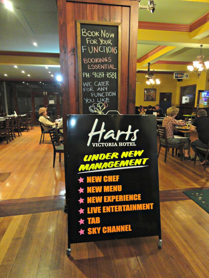 The big public bar space is already busy early on a Friday night as we enter, with about half the merry crowd seemingly adorned with fluoro work gear.
