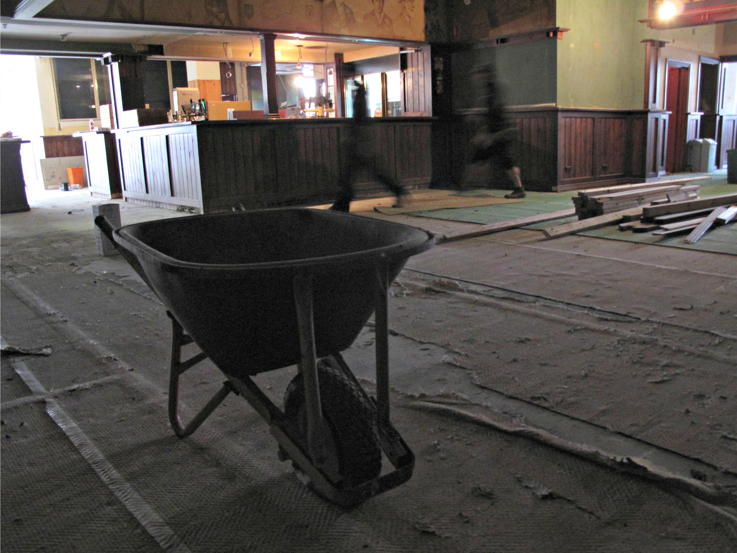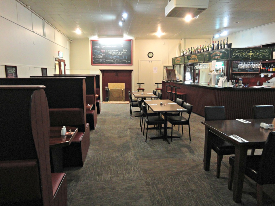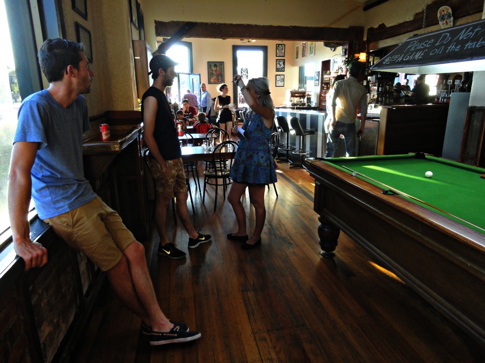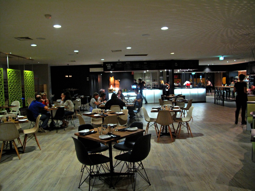 The big public bar space is already busy early on a Friday night as we enter, with about half the merry crowd seemingly adorned with fluoro work gear.