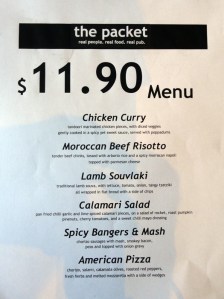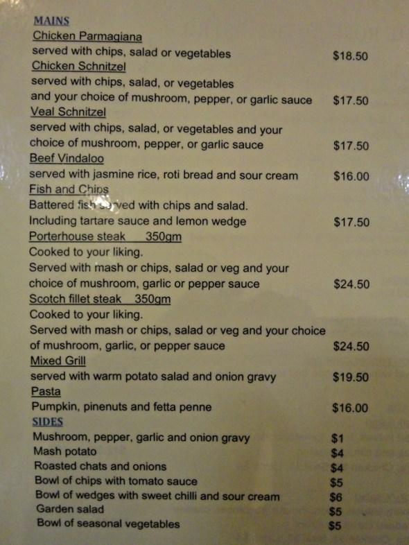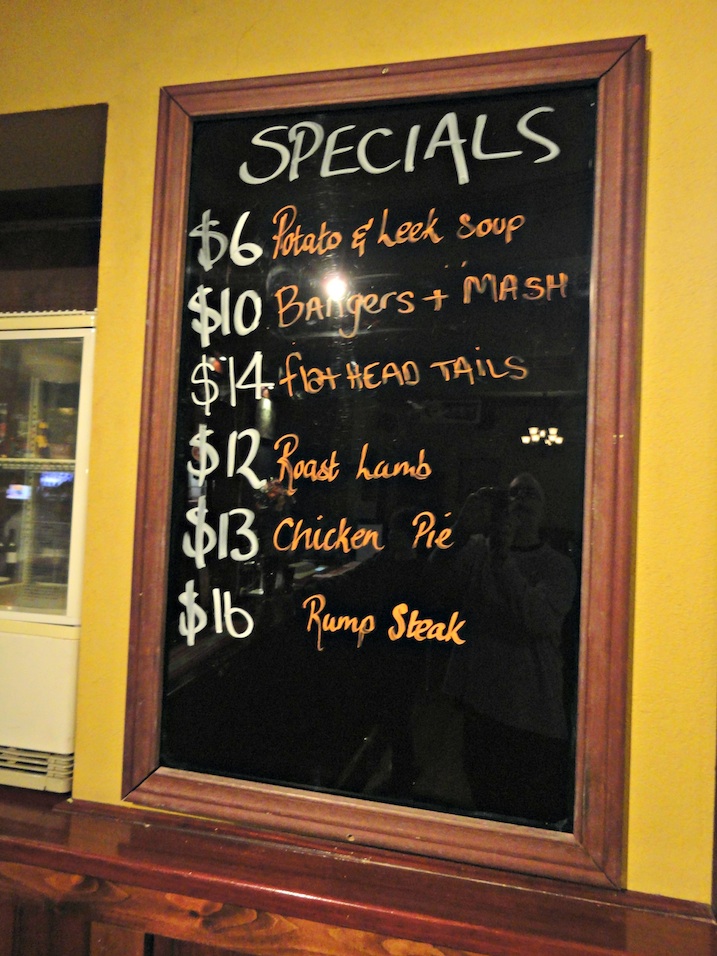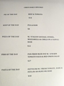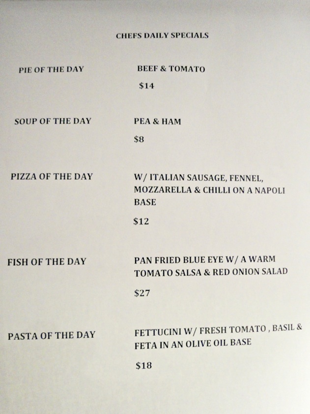 For his father, it’s pie of the day, which – according to the daily specials list next to the blackboard – is tomato and beef and which also costs $14.