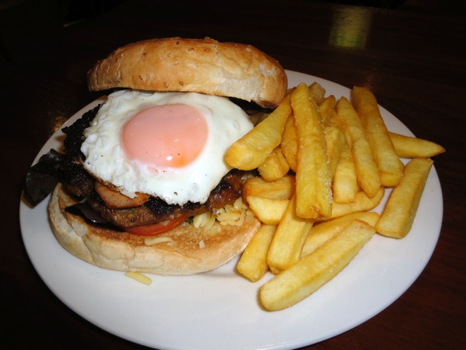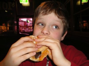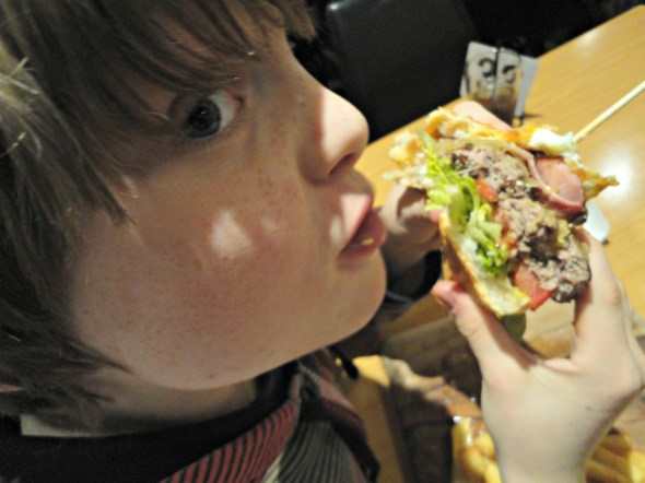No matter – this is just the sort of two-handed burger he loves so much these days as the pre-teen growing spurts come and go.