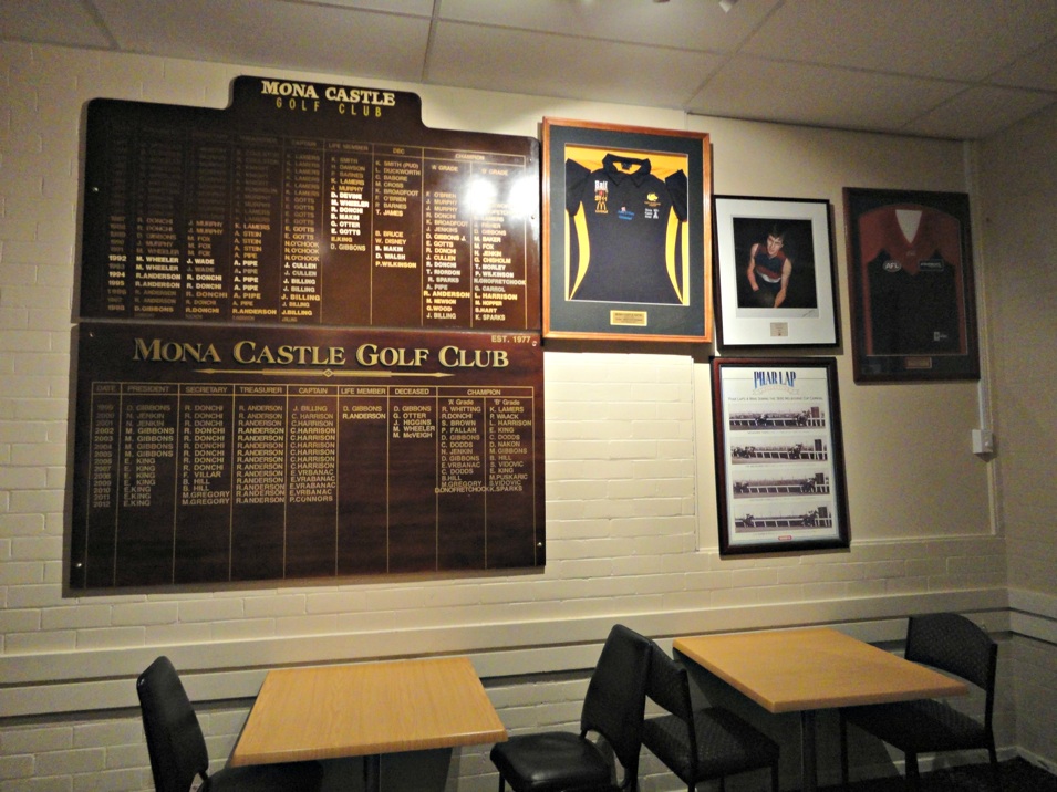 The staff are wearing monogrammed Mona Castle shirts that also bear a strong resemblance to the colour scheme of a certain local AFL team that will not be competing in any of this weekend’s finals matches.