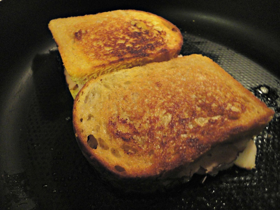 This crispy-toasted marvel is abetted by potato chips and a crunchy pickled cucumber.