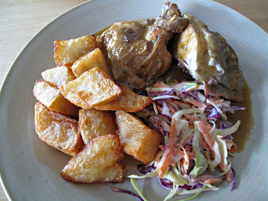 He digs the crunchy and juicy chicken, the mustardy dressing and even the iceberg lettuce.