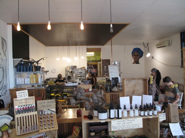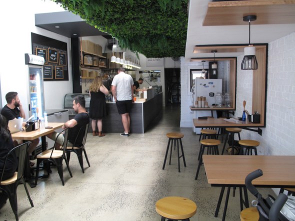We like the way the seating arrangements are so diverse – a big communal tables, several smaller, some armchairs, a few tall tables with stalls.