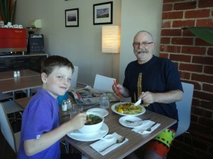 No matter – this is just the sort of two-handed burger he loves so much these days as the pre-teen growing spurts come and go.