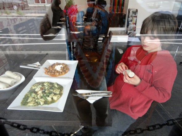 For his father, it’s pie of the day, which – according to the daily specials list next to the blackboard – is tomato and beef and which also costs $14.