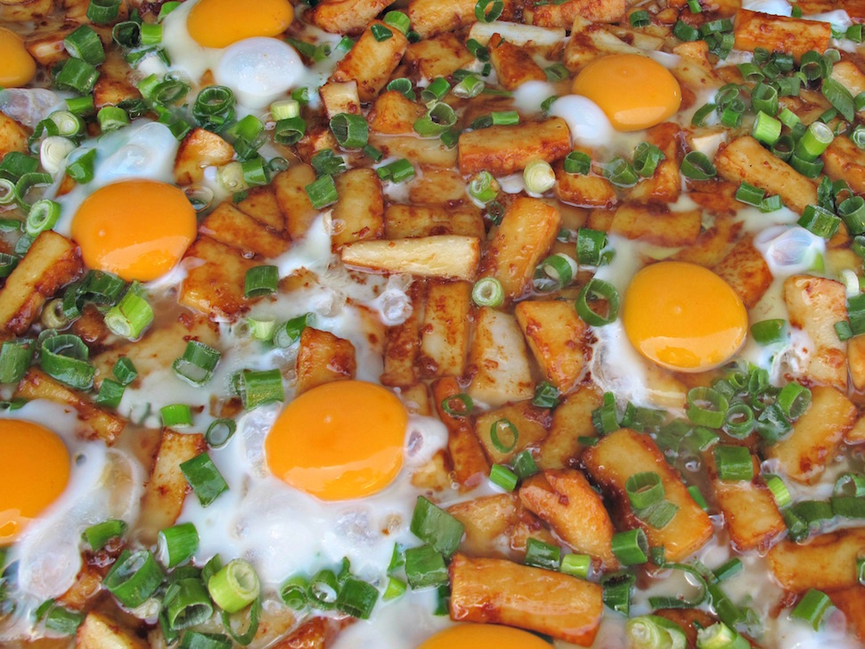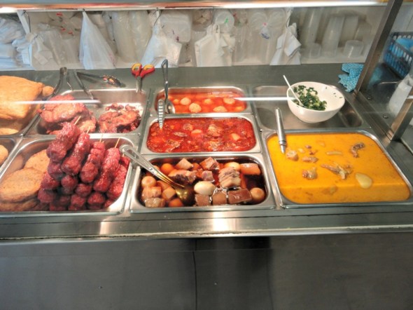 All I know is there’s a congee on the menu, some chicken dishes, too; and next to the banh mi ingredients are a beef stew and a dish of pork ribs and hardboiled eggs.