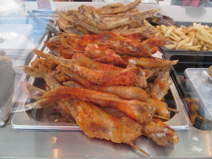 The latter are butterflied and marinated, and a whole flock of them have just entered the in-house tanning salon as I arrive.