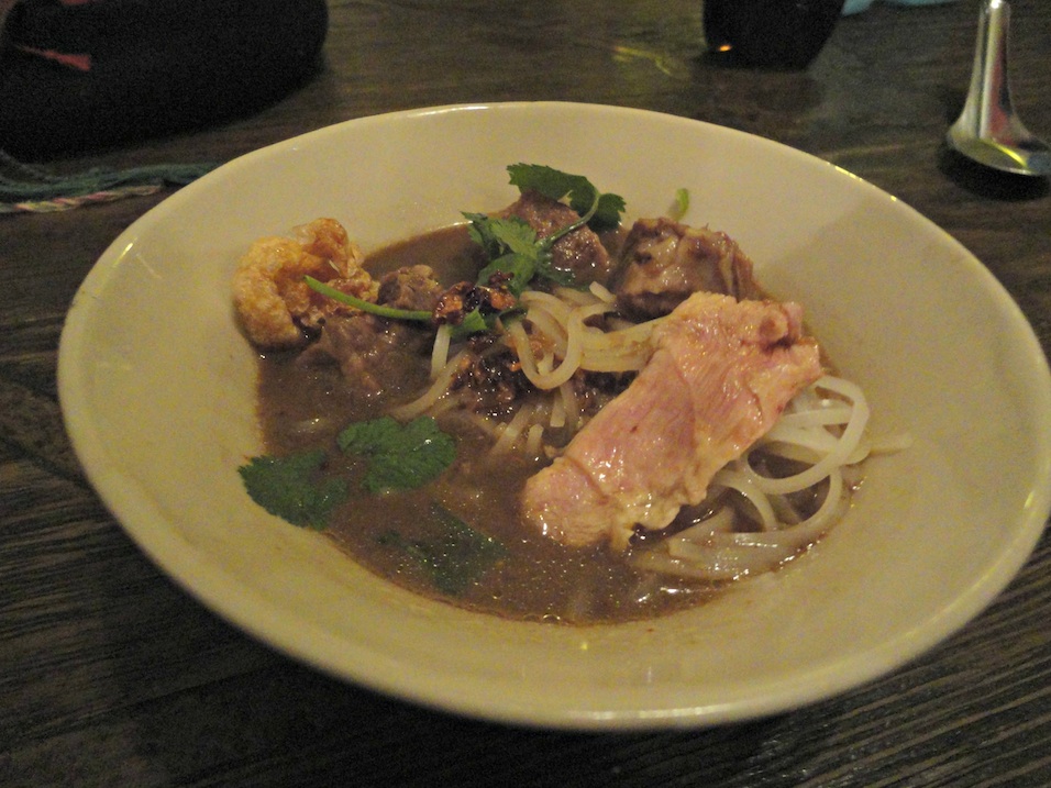 Om (top photo, $14.50) is a Lao stew of beef, with vegetables (including baby eggplants and mushrooms), galangal, chilli, lemongrass and dill.