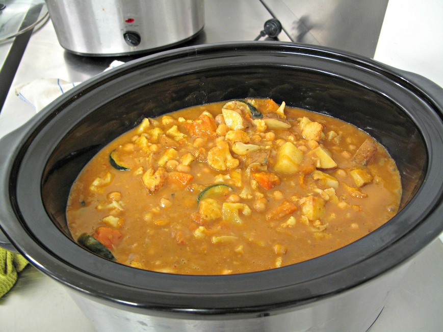 Sudanese curry – a delicious stew of cannellini beans, tomato, eggplant and potatoes. Seasoned with cumin, cardamom and cinnamon, and served with our homemade yellow spice bread.