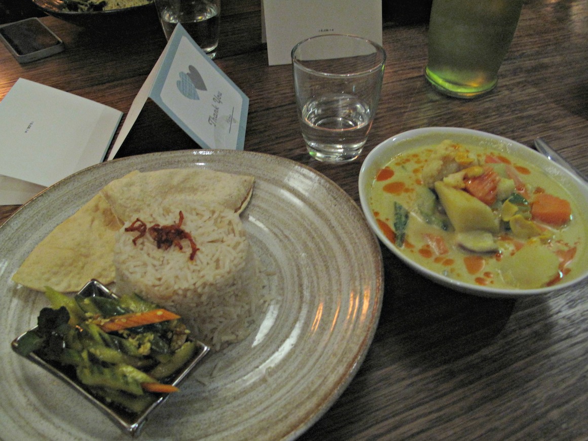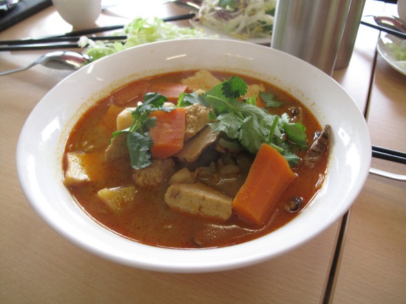 I really like the chick pea curry, which is packed with a variety of vegetables and has a rich gravy not unlike that of a massaman curry.